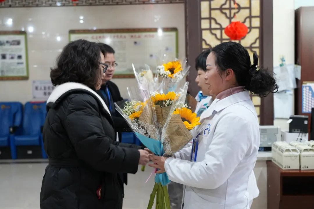 当天上午,院领导班子分组来到门诊大厅、儿科、妇产科等科室,了解在岗女职工们的工作情况,悉心交谈并为她们送上节日的祝福和礼物及鲜花,感谢女职工长期以来辛勤付出,祝大家“女神”节快乐、平安喜乐、青春永驻!